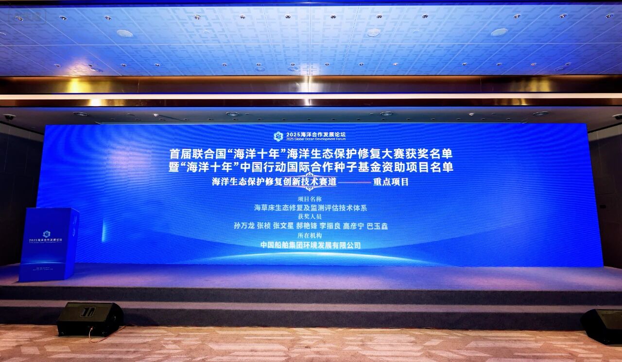 近日,中國船舶集團(tuán)環(huán)境發(fā)展有限公司(以下簡稱“中船環(huán)境”)自主研發(fā)的《海草床生態(tài)修復(fù)及監(jiān)測評估技術(shù)體系》項目,在首屆聯(lián)合國“海洋十年”海洋生態(tài)保護(hù)修復(fù)大賽中脫穎而出,榮獲“海洋十年”中國行動國際合作種子基金資助重點項目。中船環(huán)境也是唯一獨立自主完成海洋生態(tài)保護(hù)修復(fù)創(chuàng)新技術(shù)項目的企業(yè)代表。