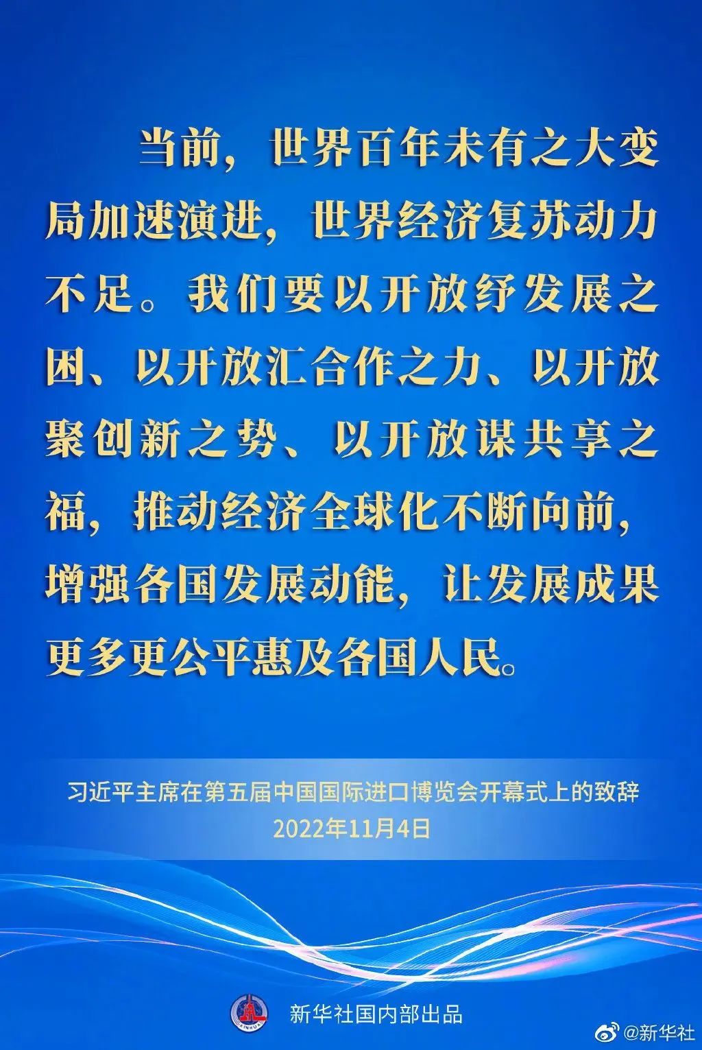 習(xí)近平強(qiáng)調(diào),開放是人類文明進(jìn)步的重要動力,是世界繁榮發(fā)展的必由之路。當(dāng)前,世界百年未有之大變局加速演進(jìn),世界經(jīng)濟(jì)復(fù)蘇動力不足。我們要以開放紓發(fā)展之困、以開放匯合作之力、以開放聚創(chuàng)新之勢、以開放謀共享之福,推動經(jīng)濟(jì)全球化不斷向前,增強(qiáng)各國發(fā)展動能,讓發(fā)展成果更多更公平惠及各國人民。