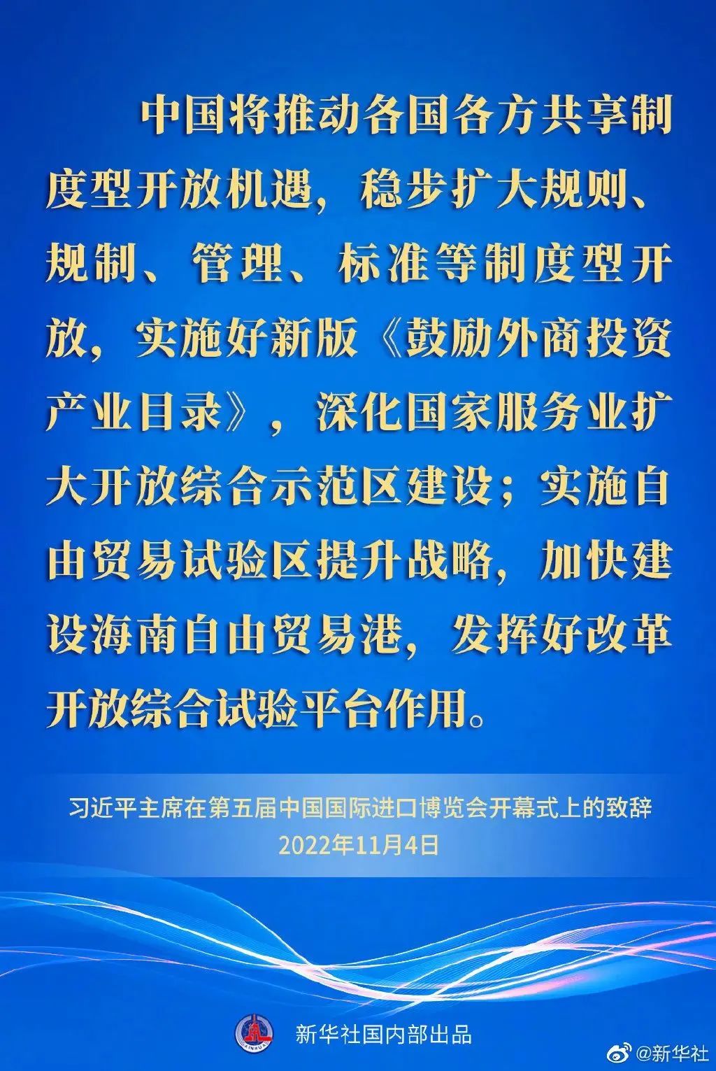 ——中國將推動各國各方共享制度型開放機(jī)遇,穩(wěn)步擴(kuò)大規(guī)則、規(guī)制、管理、標(biāo)準(zhǔn)等制度型開放,實(shí)施好新版《鼓勵外商投資產(chǎn)業(yè)目錄》,深化國家服務(wù)業(yè)擴(kuò)大開放綜合示范區(qū)建設(shè);實(shí)施自由貿(mào)易試驗(yàn)區(qū)提升戰(zhàn)略,加快建設(shè)海南自由貿(mào)易港,發(fā)揮好改革開放綜合試驗(yàn)平臺作用。