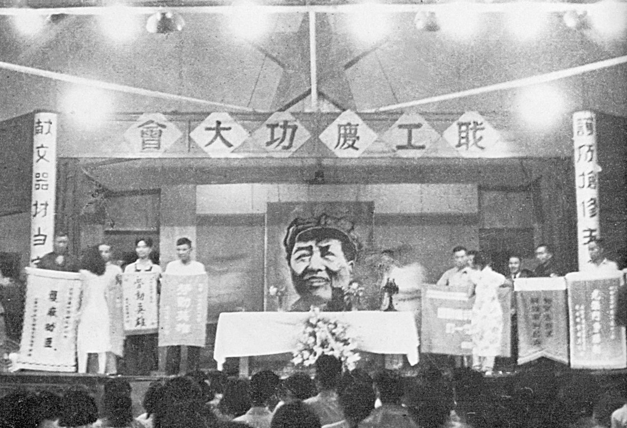 1949年7月上海,1949年7月23日,江南造船所舉行“職工慶功大會”。上海市市長兼軍管會主任陳毅、副市長曾山、華東海軍司令員張愛萍、上海市總工會主席劉長勝等出席了大會。會上總結修復廠房設備的經驗,宣布恢復生產表彰有功人員。全所有 134人被評為一、二、三等功臣受到表彰。
