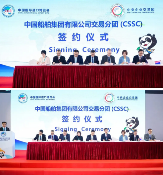 簽約儀式上,中國船舶集團所屬廣船國際股份有限公司、中船黃埔文沖船舶有限公司、滬東重機有限公司、陜西柴油機重工有限公司、中國船舶物資公司、中國船舶貿(mào)易有限公司、上海外高橋造船有限公司等7家企業(yè)與西門子、ABB、康士伯、瓦錫蘭、日本大發(fā)、韓國現(xiàn)代等19家合作商,共進行了23個項目簽約,簽約總金額共計1.14億美元,涉及軸帶發(fā)電機、主發(fā)電機、主柴油機、閥門遙控系統(tǒng)、柴油機零部件、曲軸等產(chǎn)品。另外,中國船舶集團參加本屆進博會專業(yè)觀眾觀展活動的人數(shù)也較往年有明顯提升。