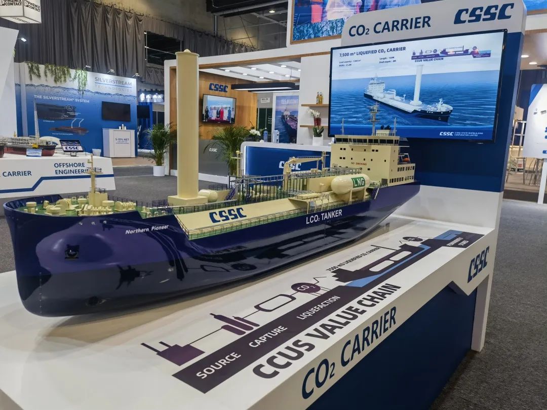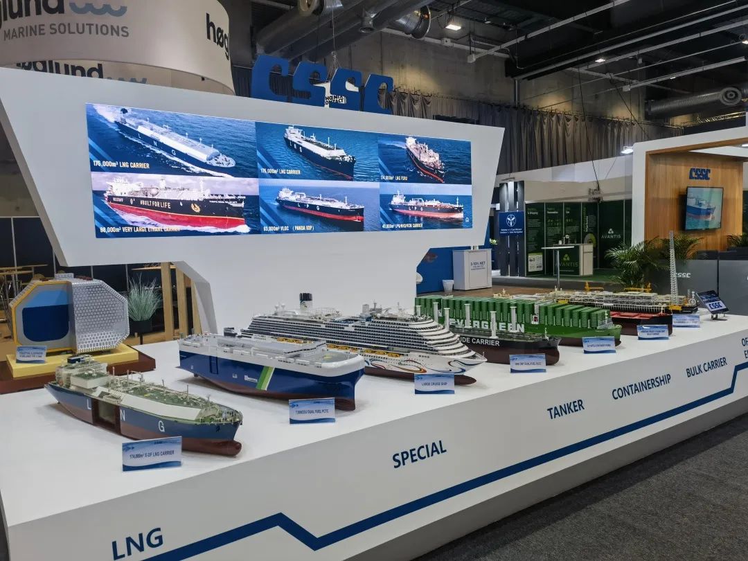 本次展會(huì),中國(guó)船舶集團(tuán)積極踐行“走出去”發(fā)展戰(zhàn)略,緊盯目標(biāo)市場(chǎng)特點(diǎn)和需求,重點(diǎn)展示了近年來(lái)船舶海工及動(dòng)力機(jī)電產(chǎn)品在綠色、低碳、環(huán)保方面取得的最新進(jìn)展和相關(guān)成果,包括全球首制7500立方米液態(tài)二氧化碳運(yùn)輸船、17.4萬(wàn)立方米大型LNG運(yùn)輸船、7000CEU雙燃料汽車滾裝船、23000TEU超大型雙燃料集裝箱船、21萬(wàn)噸氨燃料散貨船、30萬(wàn)噸級(jí)FPSO、全球首艘10萬(wàn)噸級(jí)智慧養(yǎng)殖工船,以及 12X92DF雙燃料低速機(jī)、LNG供氣系統(tǒng)、船用碳捕捉系統(tǒng)等。集團(tuán)公司展臺(tái)吸引了眾多國(guó)內(nèi)外知名船東、船級(jí)社、設(shè)備廠商等到訪觀摩,交流了當(dāng)前市場(chǎng)熱點(diǎn)并探討了未來(lái)合作機(jī)遇。