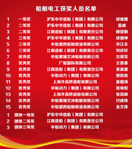 本次競賽項目既有船舶行業主體工種——船舶電工,又有現代制造業重要工種——加工中心操作調整工。競賽由滬東中華、707所承辦,上海公司協助負責保密監督工作;競賽首次全部采用第三方裁判,進一步提升執裁專業性和公正性。來自40家成員單位共計120名選手同臺角逐,最終評選出個人及團體一、二、三等獎和個人優秀獎,優秀組織獎等獎項。參賽選手們相互學習交流、深入切磋技藝,展現了中國船舶技能人才頑強拼搏、追求卓越的良好精神面貌。
