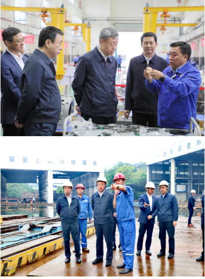 4月24-25日,中國船舶集團(tuán)有限公司黨組書記、董事長溫剛前往中國船舶集團(tuán)旗下重慶公司、川船重工、長征重工、前衛(wèi)科技、重齒公司調(diào)研,強(qiáng)調(diào)要深入學(xué)習(xí)貫徹習(xí)近平新時代中國特色社會主義思想和黨的二十大精神,圍繞核心使命,突出價值創(chuàng)造,不斷推動企業(yè)實(shí)現(xiàn)高質(zhì)量發(fā)展。集團(tuán)公司黨組成員、副總經(jīng)理盛紀(jì)綱參加調(diào)研。