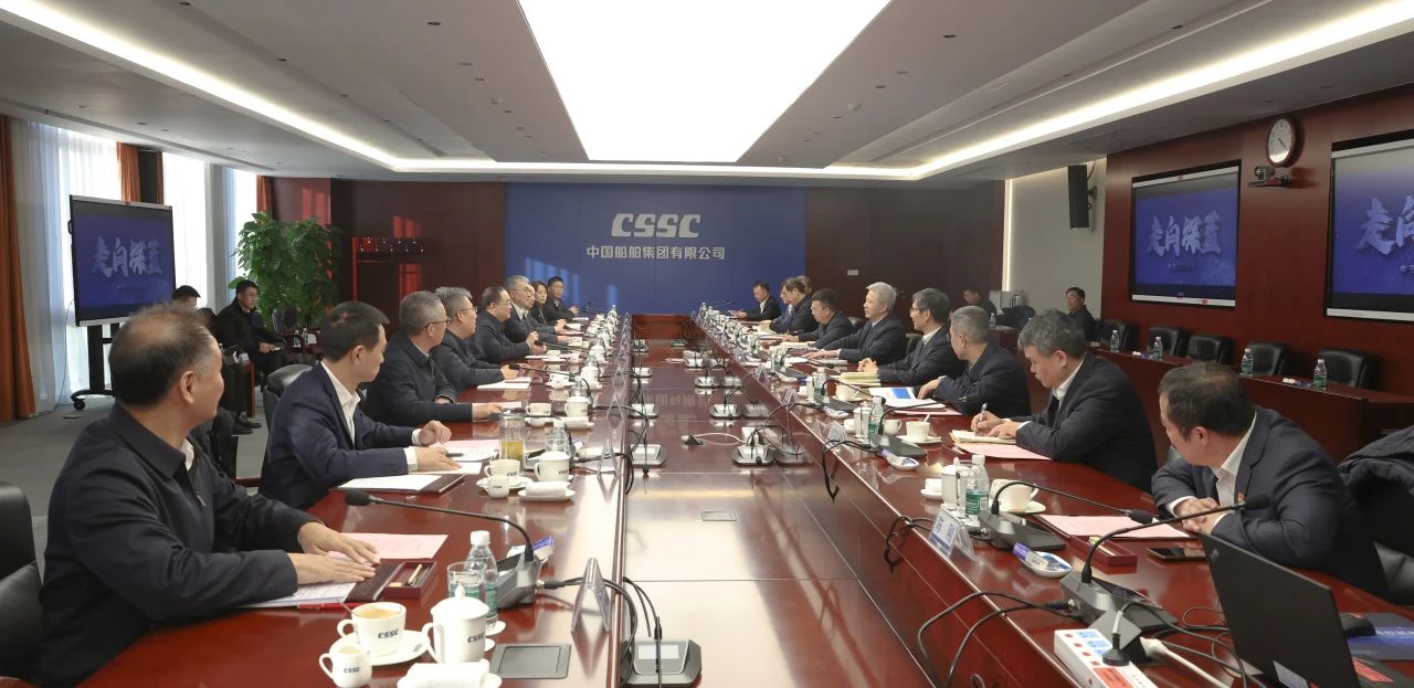 徐鵬對段向東一行的來訪表示歡迎,并介紹了集團公司業務發展情況。徐鵬表示,中船集團與中鋁集團長期以來保持良好合作關系,交流合作廣泛、基礎深厚、前景廣闊。中船集團將按照“1-1-7-8”總體思路奮力推進世界一流船舶集團建設邁上新臺階,希望雙方建立健全長效溝通合作機制,協同推進關鍵技術、裝備研制攻關,深化多領域、多層次合作,共同服務好國家重大戰略。