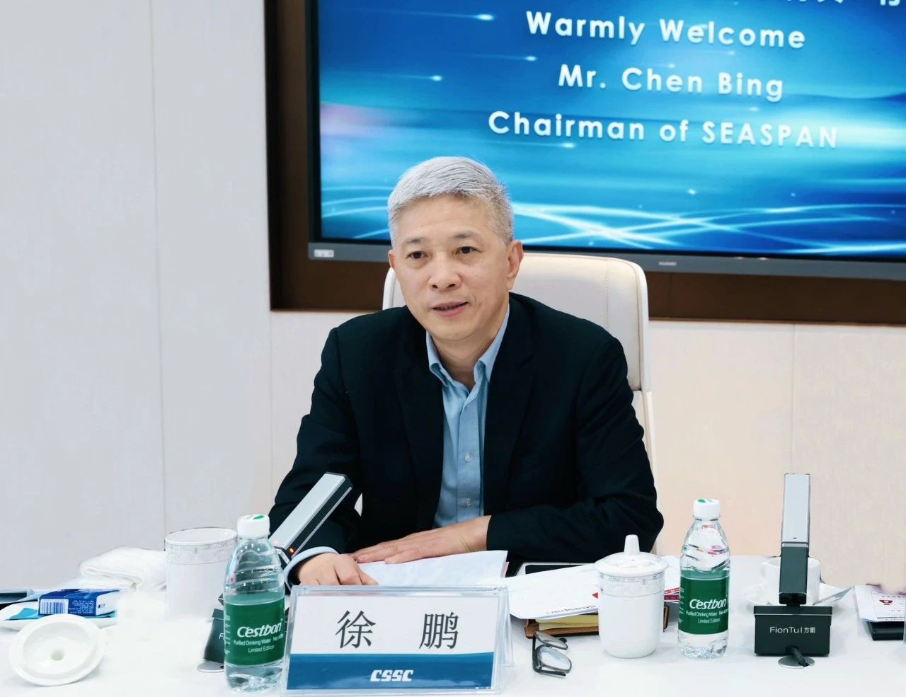 徐鵬對陳兵一行的來訪表示歡迎,并感謝Seaspan公司對中船集團的長期信任與支持。徐鵬表示,中船集團將持續(xù)提升自身綜合能力,努力為客戶提供更優(yōu)質(zhì)的產(chǎn)品和服務。Seaspan公司是全球最大的獨立集裝箱船租賃船東公司,與中船集團在長期合作中結下了深厚友誼。未來,希望雙方建立常態(tài)化溝通交流機制,在船舶建造與升級改造、國際船海市場拓展、船舶全生命周期運維、綠色能源開發(fā)等方面持續(xù)深化進一步合作,共同為行業(yè)持續(xù)健康發(fā)展作出應有貢獻。