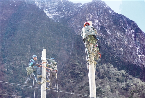 工人在玉麥鄉境內施工。西藏自治區山南隆子縣玉麥鄉電力線路近日全線貫通,