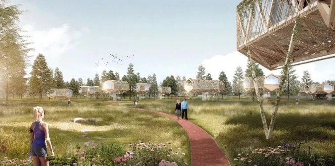 ????“棠上人家”方案以“浮木”為概念,旨在創造一種漂浮于自然之上、如樹木般生長的建筑形態。設計以鄉村建設的天然環境保護和不規則點狀供地特點為切入點,提出立足鄉村、面向未來的輕型建造策略,對結構選型、空間組合、表皮構造等方面進行研究,打造綠色生態的新型鄉村建筑形態。