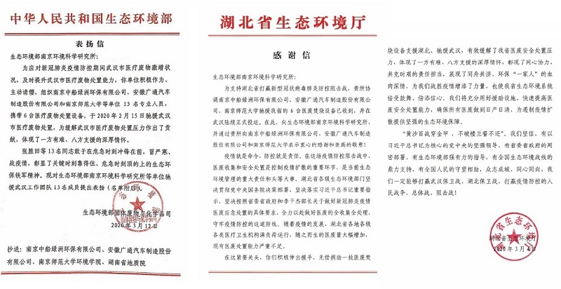 ????近日,國(guó)家生態(tài)環(huán)境部、湖北省生態(tài)環(huán)境廳分別發(fā)出表揚(yáng)信和感謝信,對(duì)中國(guó)船舶集團(tuán)所屬中船綠洲等在疫情防控期間作出貢獻(xiàn)的單位給予高度贊揚(yáng),表示衷心的感謝,并對(duì)包含中船綠洲旗下環(huán)保公司陳紀(jì)賽、陳良義、王小峰、周浩在內(nèi)的13名生態(tài)環(huán)境“鐵軍”提出表揚(yáng)。
