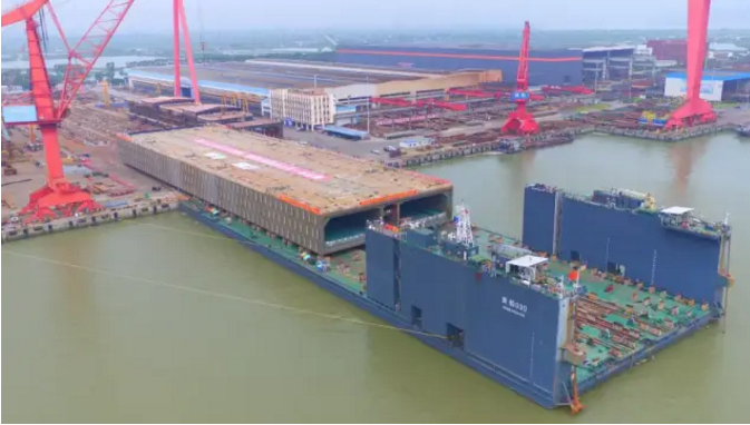 ????深中通道沉管隧道鋼殼由中國船舶集團(tuán)旗下廣船國際、黃埔文沖承建。
