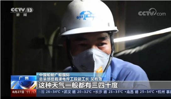 8月份正是廣州高溫天氣最為密集的一個月,在烈日的炙烤下,管節的鋼板被曬得滾燙。為了減少焊縫接頭,避免產生焊接缺陷,焊接工人常常保持一個姿勢一焊就是大半個小時。