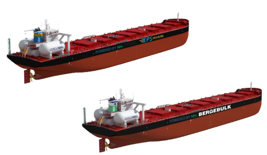 2月28日,北海造船聯(lián)合中船貿易與新加坡東太平洋航運公司(EPS)新簽4艘21萬噸Ammonia DF/DF Ready散貨船建造合同;2月29日,北海造船再次聯(lián)合中船貿易,與新加坡百國山航運公司(Berge Bulk)成功簽署2艘21萬噸Ammonia Ready散貨船建造合同。