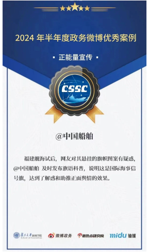 另外,日前2024上半年度政務微博影響力報告正式公布,@中國船舶獲評“全國十大國資央企微博”。@中國船舶通過創(chuàng)新傳播形式,讓權威性信息觸達民眾,提供高效高質的資訊和服務,為助力集團公司高質量發(fā)展注入動能。