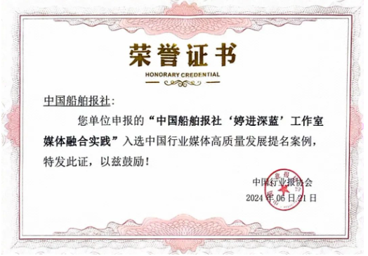 中國船舶報社“婷進深藍”工作室,媒體融合實踐獲評中國行業(yè)媒體高質量發(fā)展提名案例。