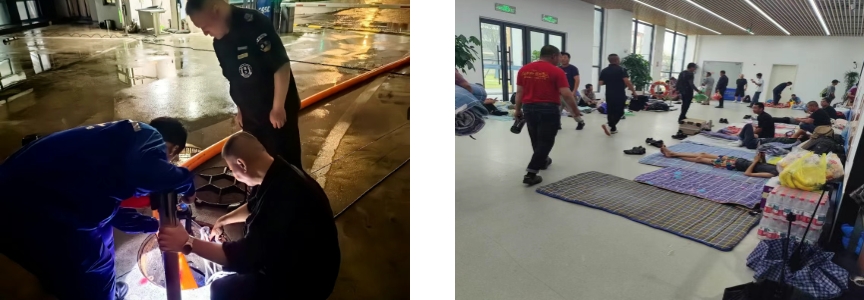 第一時(shí)間啟動(dòng)防汛防臺(tái)緊急預(yù)案,向全體員工發(fā)出動(dòng)員令。相關(guān)部門深入現(xiàn)場(chǎng)檢查設(shè)備設(shè)施,排除風(fēng)險(xiǎn)隱患。針對(duì)低洼易積水區(qū)域開(kāi)展“竹節(jié)草”臺(tái)風(fēng)前安全專項(xiàng)檢查,確保室外門能關(guān)盡關(guān),同步組織排查所有易松動(dòng)和易掉落物料的清理;在樓宇門口設(shè)置防汛沙袋,做好防水工作;在動(dòng)力作業(yè)區(qū),開(kāi)展變電站防汛沙袋布置和水位檢查等,確?,F(xiàn)場(chǎng)安全。