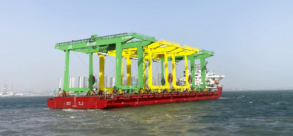 近日,武漢船機海西重機公司為天津港北疆港區C段智能化集裝箱碼頭一期工程承制的第五批4臺自動化軌道吊滾裝發往天津港。