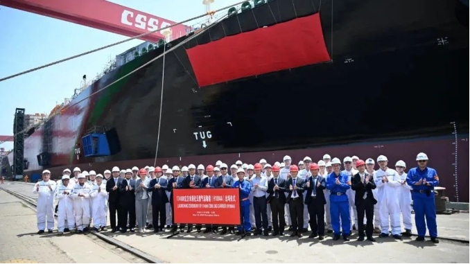 △中海油項(xiàng)目17.4萬立方米LNG運(yùn)輸船H1884A船出塢