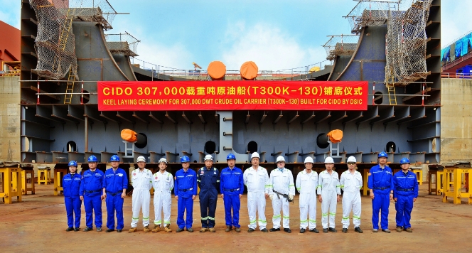 為韓國CIDO SHIPPING建造的30.7萬噸超大型原油船130號船提前年度計劃12天實現鋪底節點,進入塢內合攏階段。