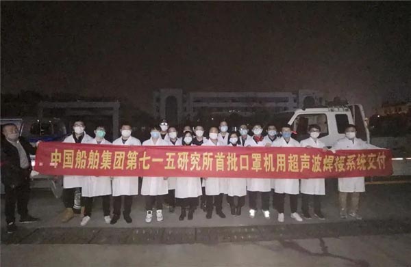 ????經過11晝夜的連續奮戰,中國船舶集團完成了N95口罩機、平面口罩機、壓條機等三型關鍵設備樣機試制工作,性能指標完全滿足設計要求,并全面鋪開量產設備的總裝調試,第15天就實現了量產設備交付,已交付壓條機、平面口罩機和超聲波點焊機50余臺套,滿足當前疫情防控工作的急需。在緊急馳援國資系統所屬企業相關設備需求的同時,面向全國抗疫戰場各類企事業單位提供相關設備,累計預訂口罩機110余臺、壓條機90余臺和超聲波點焊機340余套。