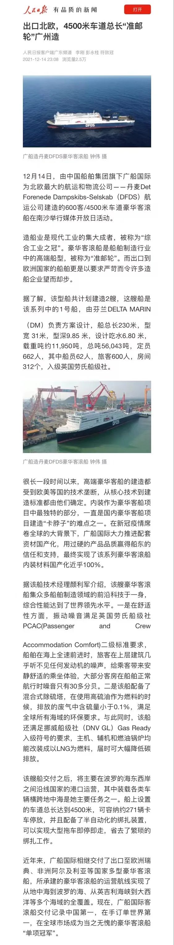 對這艘“準(zhǔn)郵輪”的高端船舶,媒體盛贊廣船國際在新冠疫情席卷全球的大背景下,大力推進(jìn)配套資材國產(chǎn)化,用過硬的產(chǎn)品品質(zhì)贏得船東的信任和支持,最終實(shí)現(xiàn)了該系列豪華客滾船內(nèi)裝材料國產(chǎn)化近乎100%,是當(dāng)之無愧的豪華客滾船“單項(xiàng)冠軍”。