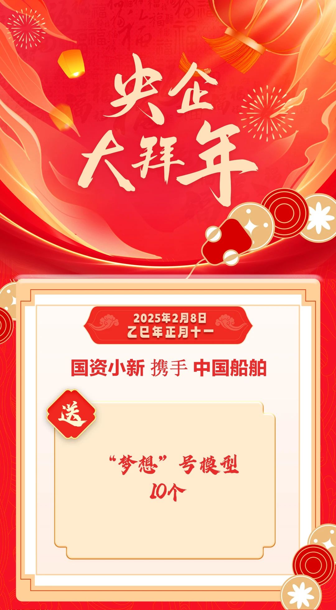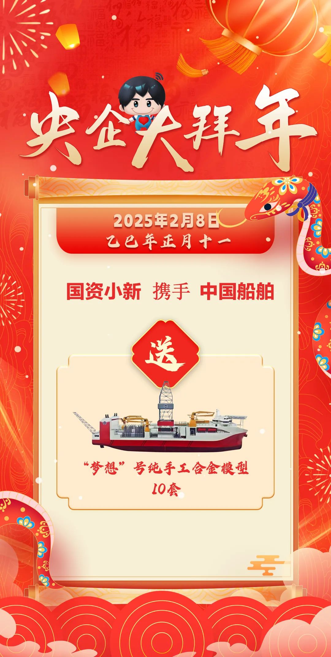 今天“國資小新”聯(lián)合中國船舶抽取10位幸運(yùn)粉絲,送上“夢想”號純手工合金模型。