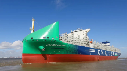 8月23日,中國船舶集團(tuán)旗下滬東中華聯(lián)合中船貿(mào)易為法國達(dá)飛海運(yùn)集團(tuán)建造的13000TEU雙燃料動(dòng)力集裝箱船系列6號船“CMA CGM AMAZONIA”號命名交付。至此,該系列船6艘船全部交付,順利收官。